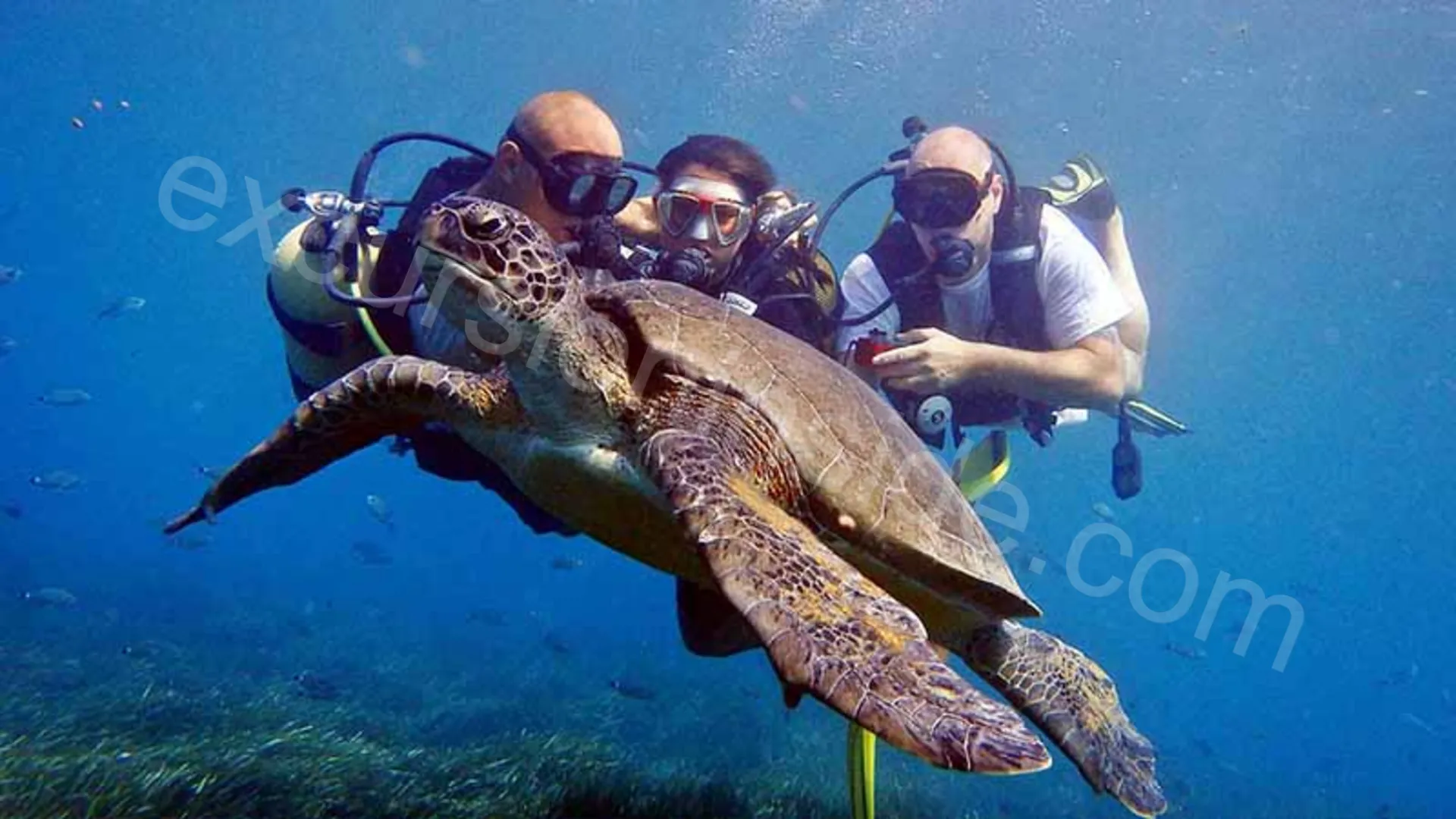 - Turtle Reef: One of the favorites among Side diving tours is Turtle Reef, a shallow and calm spot. In this area, with a depth of 5-8 meters, you have the chance to see Caretta caretta sea turtles up close during the summer months. It is ideal for both snorkelers and beginner divers.